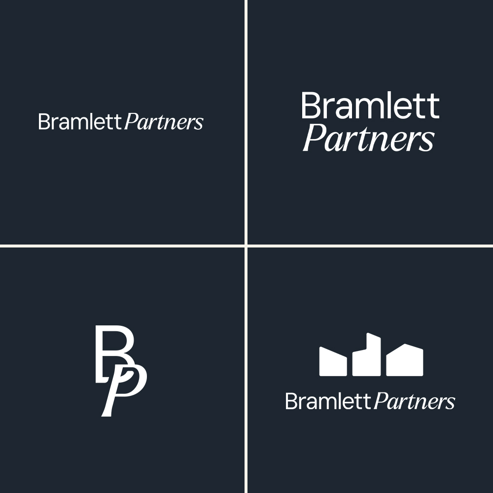 Our Primary Logos are simple and sophisticated typeset in a bold sans-serif "Bramlett", contrasted with an italicized serif "Partners". The primary logo(s) can be used on all branded materials in a single color and applied appropriately for the allowed space (ex: horizontal on website or vertical on a social graphic). The Secondary Logos with the Skyline can be used on branded materials in multi-color for assets where more personality is wanted to be showcased.